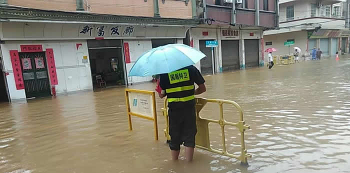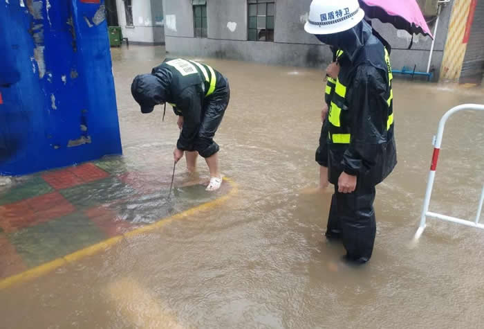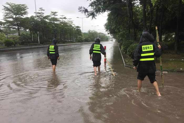 受今年4號臺風艾云尼影響,佛山普降大暴雨,造成部分地段嚴重水浸。面對突如其來的惡劣天氣,佛山南海國盾特衛(wèi)保安服務(wù)公司迅速啟動應(yīng)急預(yù)案,要求各崗點保安員全員備勤,隨時準備投入到防洪搶險工作中去。