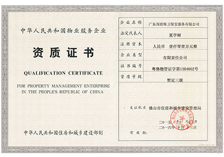 物業(yè)服務(wù)企業(yè)資質(zhì)證書